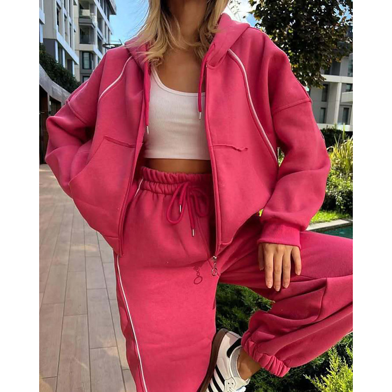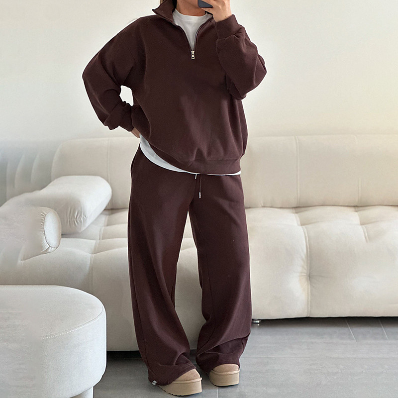 Women's Tracksuit Sweatpants Pullover Sweatshirt Zipper Pocket Solid Colored Clothing Suit Fall Dark Navy Apricot Gym Workout Sports Windproof Long Sleeve Sport Activewear Micro-elastic Regular Fit