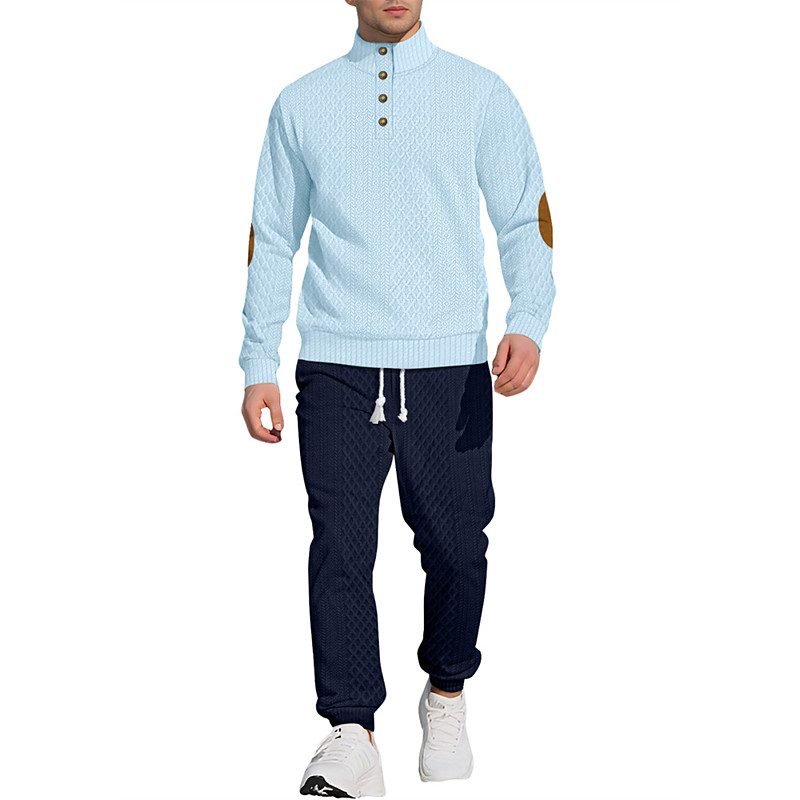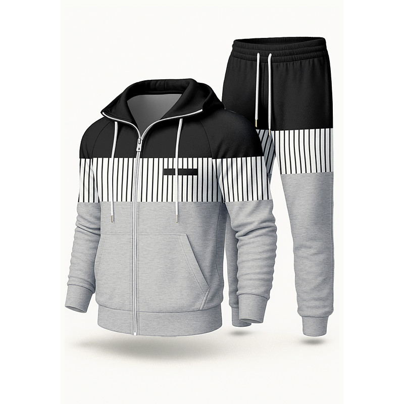 Men's Sweatshirt Tracksuit Outfit Set Stand Collar Outdoor Daily Sports Jacquard Drawstring Button Up Color Block Wine Red Black White Polyester Activewear Fashion Streetwear Spring