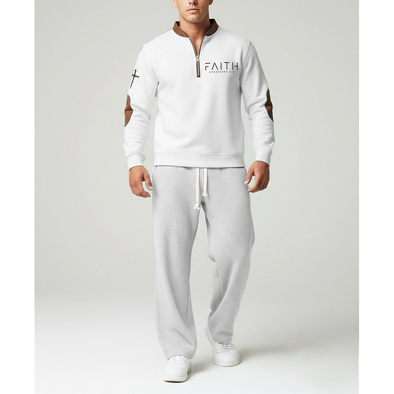 Men's Sweatshirt Tracksuit Sweatpants Outfit Set Stand Collar Outdoor Daily Sports Drawstring Half Zip Color Block Letter Blue Black White Activewear Fashion Streetwear Spring