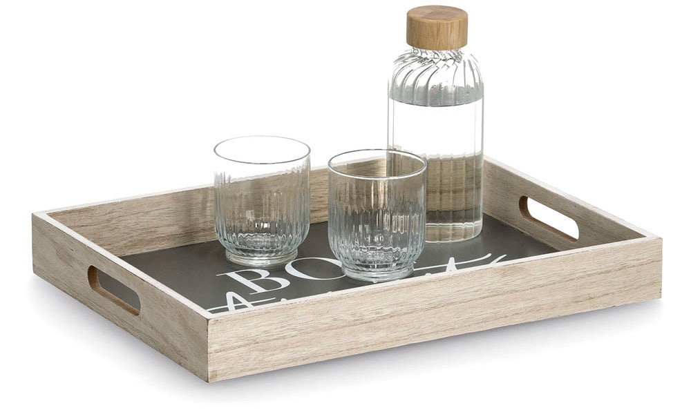 Tablett ZELLER PRESENT, grau (anthrazit), B:30cm H:5cm L:40cm, MDF, Tabletts, mit Aufdruck ''Bon Appetit'', 2 Grifflöcher
