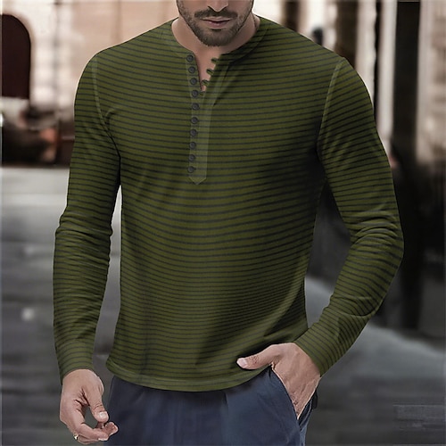 Per uomo Maglietta Maglia Henley Camicia a Maniche Lunghe Manica Lunga Henley Primavera Autunno A righe Moda Designer Essenziale Bottoni Vacanza Streetwear Uscire Giallo Vino Blu marino Maglietta Top