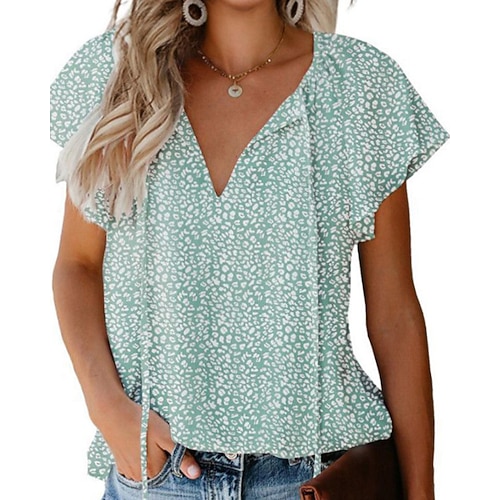 Per donna Maglietta Leopardo Casual Manica Corta Scollo a V Top Regolari Quotidiano Uscire Weekend Stampato Nero Verde chiaro Rosa Vino Blu marino Estate Primavera