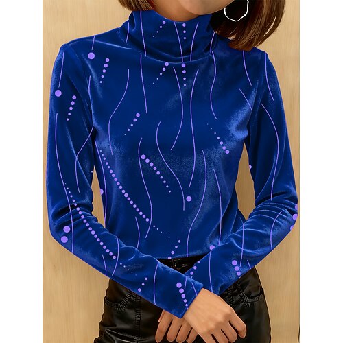 Per donna Maglietta Grafico Geometria Elegante Vintage Moda Manica Lunga Dolcevita Top Regolari Quotidiano Uscire Weekend Stampato A Strati Vino Blu Reale Viola Verde Autunno