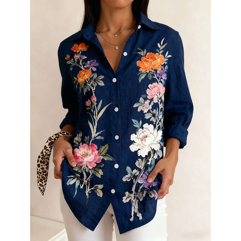Women's Shirt Floral Elegant Vintage Casual Long Sleeve Shirt Collar Regular Tops Work Daily Holiday Buttons Print Navy Blue Summer Spring Fall