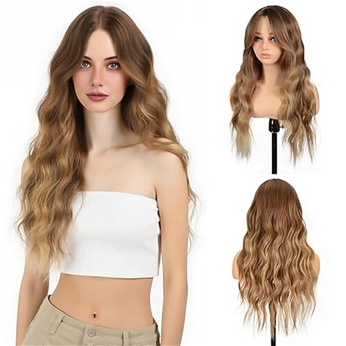 Parrucca in Coda di Cavallo Parrucca Sintetica Riccia Ondulata con Frangia Lunghe Color Oro Chiaro Viola Rosa Bionda Chiara Marrone Scuro Rosso Vino Capelli Sintetici 28 pollici Parrucca Anime