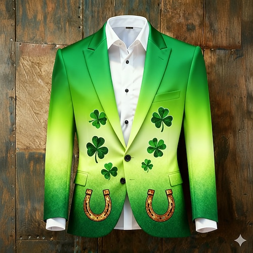 San Patrizio Per uomo Trifoglio Giacca blazer Cappotto Di tendenza Confortevole Traspirante Artistico Casual Quotidiano Abbigliamento da sera Festival Stampa 3D Bottoni Multi-tasche Primavera Autunno