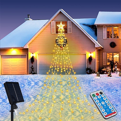 luci a forma di albero di Natale, alimentate ad energia solare, 350 LED con 8 modalità e timer, luci a forma di stella per esterni impermeabili per decorazioni natalizie per finestre, cortile, giardino, matrimonio, decorazioni per le feste