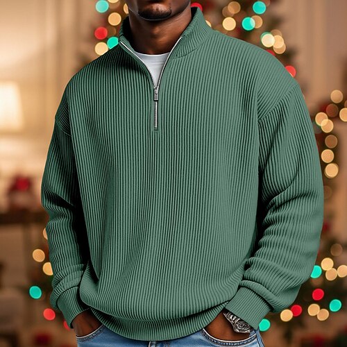 Per uomo Camicia di Velluto a Coste Polo Vacanza Streetwear Zip a un quarto Manica Lunga Moda Essenziale Tinta unica Cerniera Autunno Primavera Autunno Autunno Inverno Vestibilità comoda Nero