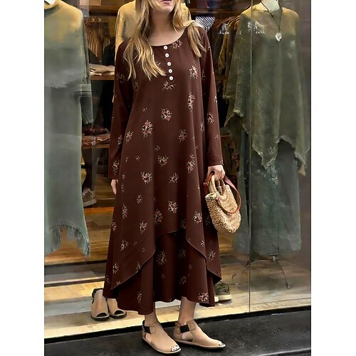 Per donna Abito Midi Abito a Tubino Abito a trapezio Casual Ferie Vestibilità comoda Floreale Grafico Manica Lunga Girocollo Bianco Giallo Marrone Verde Estate Primavera Autunno Inverno