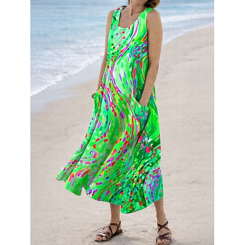 Per donna Abito Midi Vestito Estivo Abito a trapezio Vacanza Casual Boho Spiaggia Ferie Vestibilità comoda Grafico Geometrico Senza Maniche Collo a U Blu Rosso Viola Verde Estate Primavera