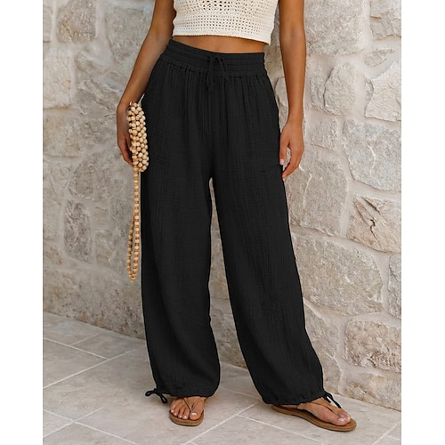 Per donna Gamba larga Vacanza Lunghezza intera Vita Alta Comodità Inelastico Casuale Quotidiano All'aperto Blu Corallo Nero Giallo Estate Primavera Vestibilità comoda