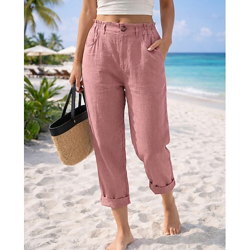Per donna Pantaloni casual Vacanza Essenziale Lunghezza alla caviglia Vita Alta Confortevole Inelastico Vacanza Formale Streetwear Blu Grigio scuro Aalbicocca Nero Estate Primavera Vestibilità comoda