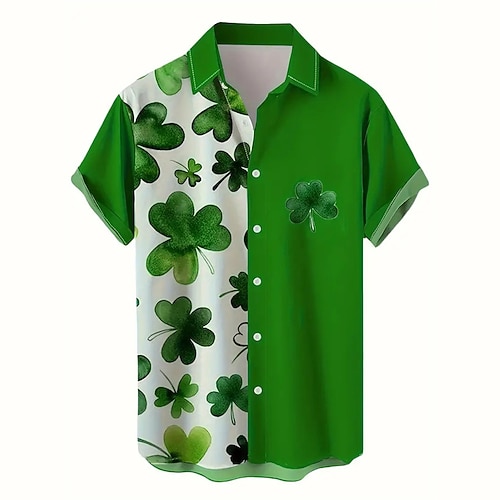 festa di san patrizio quadrifoglio camicia casual da uomo abbigliamento quotidiano per uscire nel fine settimana servizio serale estivo maniche corte verde militare, verde menta, verde scuro s, m, l
