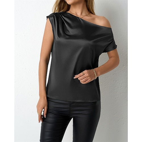 Per donna Camicia Elegant Elegante Raso/Satin Tinta unica Semplice Elegante Vintage Signore Senza Maniche Senza Spalle Top Regolari Lavoro Quotidiano Ferie Arricciato Drappeggiato Nero Verde militare