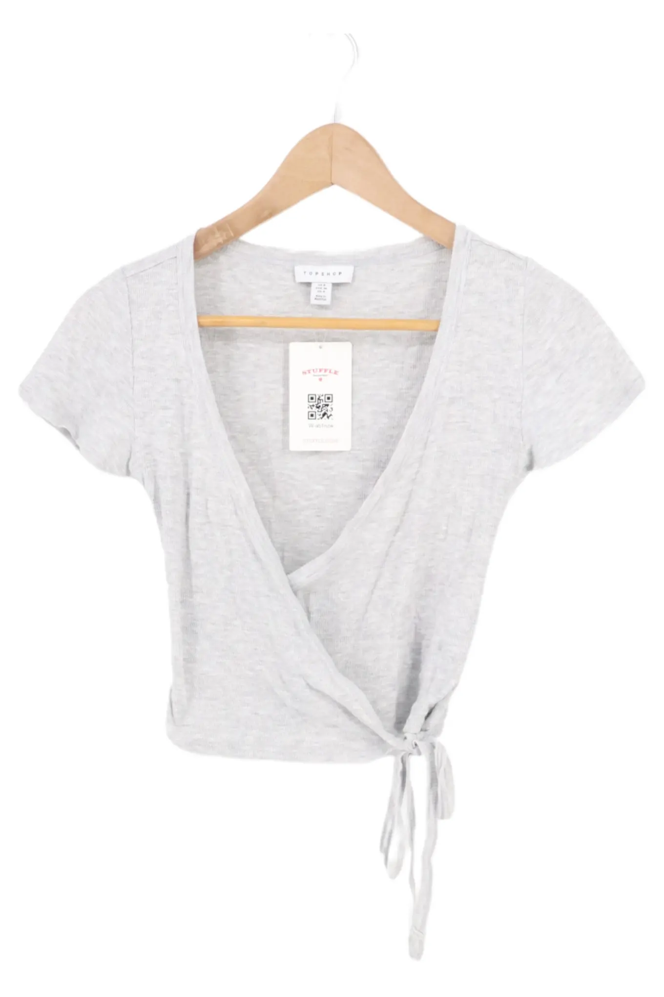 TOPSHOP T-Shirt Gr. 36 Casual Grau Wickeloptik Damen