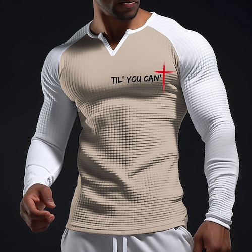 Maglietta da uomo con Bibbia Crusaders Fino a Quando Puoi' Maglietta a maniche lunghe Raglan Collo V Christian Ispirazionale Grafica Cross Rossa Texturizzata Waffle Slim Fit Muscle Fit Chiesa