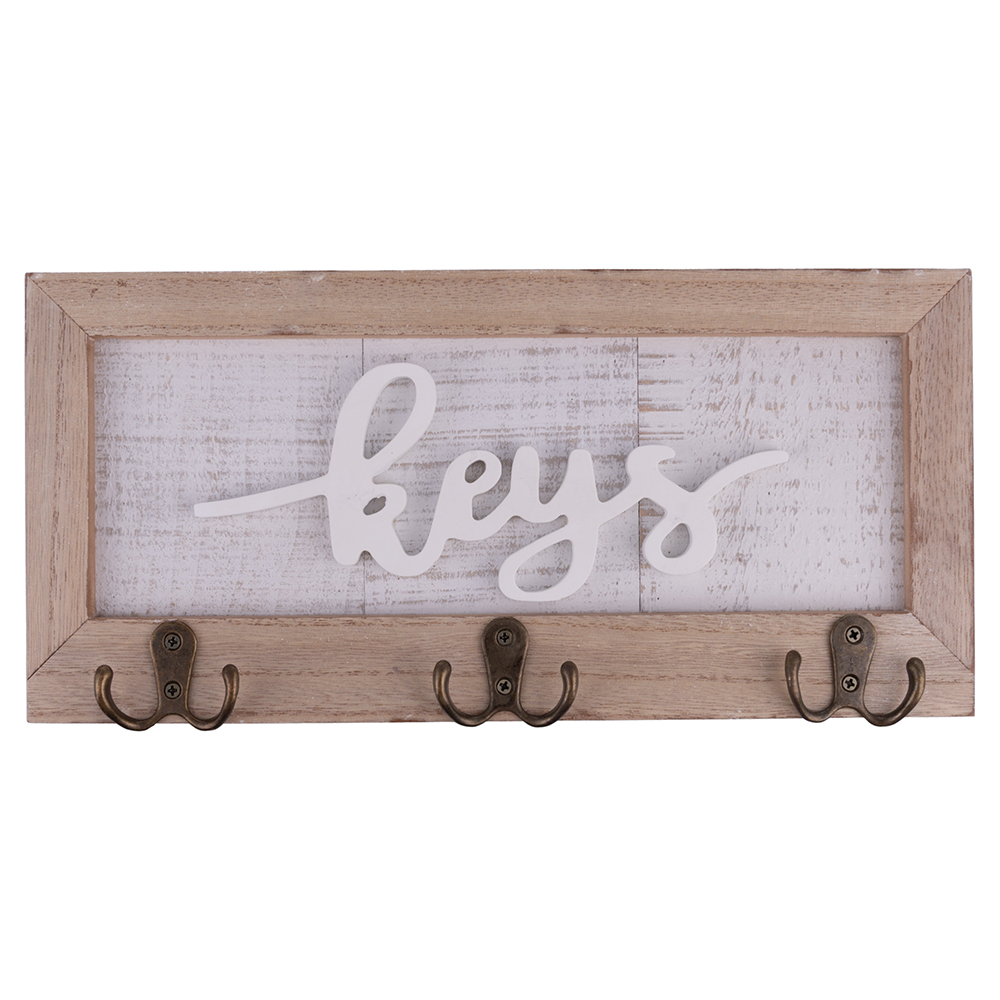 <p>Portachiavi da muro 3 ganci in legno MDF 36x2,2x17 cm, Sibilla</p>