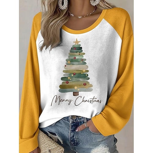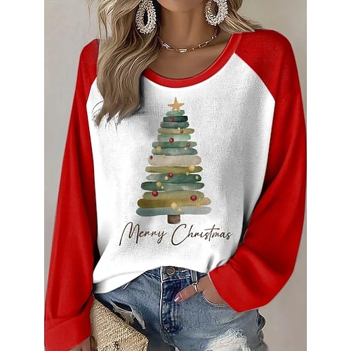 Maglietta donna di Natale Albero di Natale Grafica Vintage Elegante Classico Manica Lunga Collo A Giro Collo A Giro Top Regolari Giornaliero Weekend Stampa Nera Rossa Verde Primavera Autunno Inverno