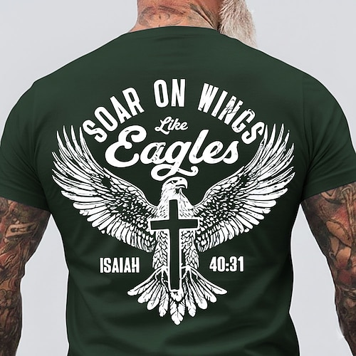 Maglietta Motivazionale della Bibbia Uomo Volare sulle Ali come Isaia 40:31 Aquila Croce Cristiano Religioso Fede Grafica Collo a Giro Regolare Fit Casual Designer Abbigliamento
