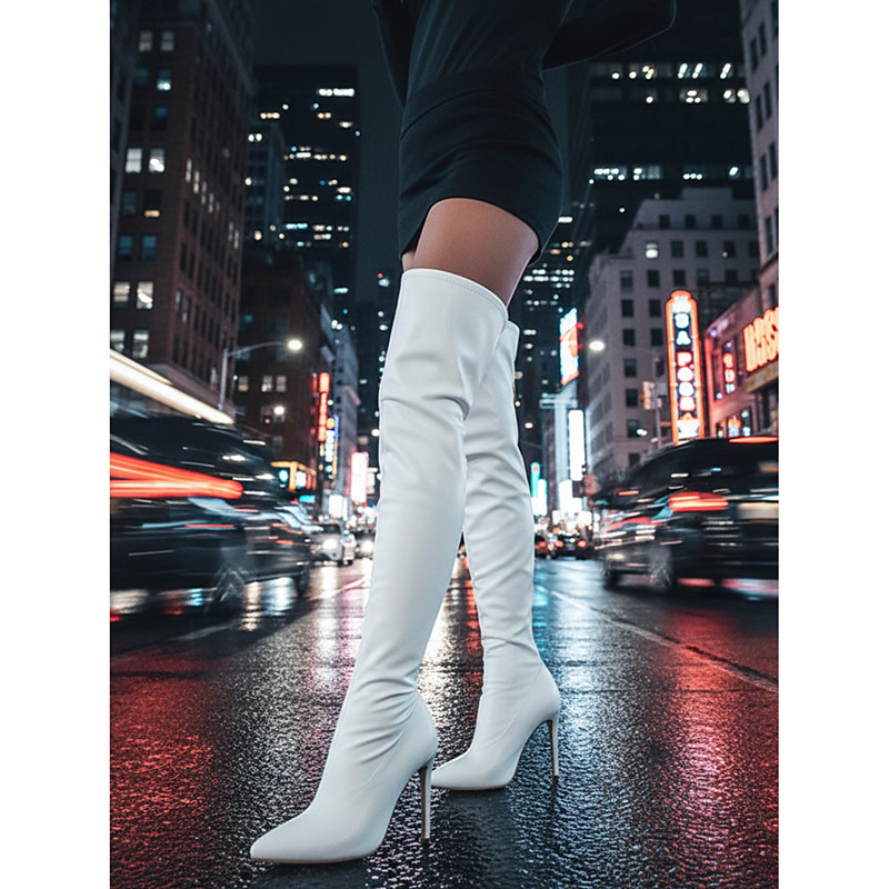 Women's Black Boots Over-the-Knee Boots with Stiletto Heel - Pointed Toe High Heel Boots for Evening Party