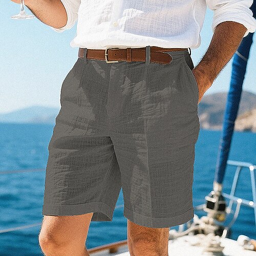 Per uomo Shorts Shorts di Lino Pantaloncini Estivi Shorts da Spiaggia Tasca Tasca posteriore Bottoni Semplice Comodità Traspirante Corto Vacanza Ferie Spiaggia Hawaiano Boho Nero Bianco