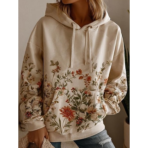 Felpa con cappuccio vintage boho 3D stampata da donna felpa con cappuccio patchwork felpa a pullover floreale felpa a pullover oversize a maniche lunghe casual calda attiva con cappuccio street