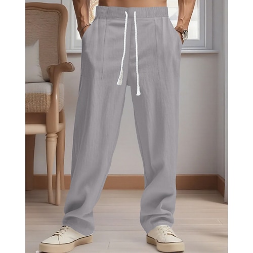 Per uomo Pantaloni di Lino Pantaloni Pantaloni Estivi Pantaloni da Spiaggia Coulisse Tasca Elastico in vita Semplice Comodità Traspirante Vacanza Quotidiano Ferie Hawaiano Boho Nero Bianco
