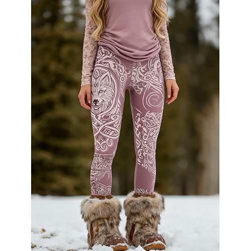 Leggings Boho Viking da donna in stile etnico vintage leggings comodi streetwear a lunghezza intera vita alta grafica a motivo geometrico vita elastica stampa termici caldi comodi elastici per le
