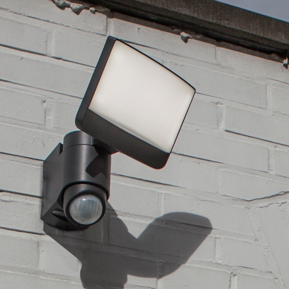 Lutec Sunshine - applique extérieure avec détecteur - 20 x 18 x 24 cm - 16,5W LED inclus - IP44 - gris foncé