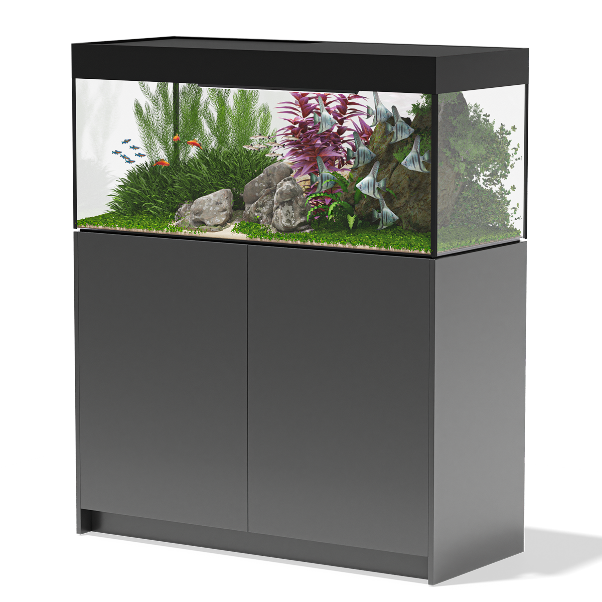 Credenza legno, finitura acciaio ossidato, piano effetto marmo, 136x50