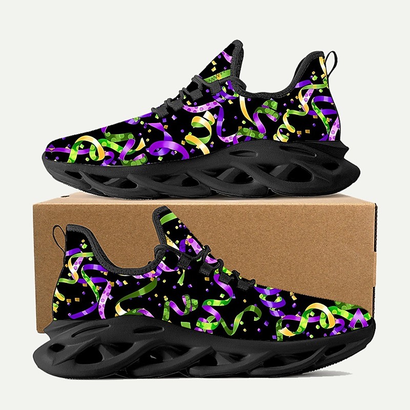 Men's Mardi Gras Confetti Print Lace-Up Sneakers - Cushioned Comfort Festive Shoes for Carnival Parades, Street Celebrations, Themed Parties Casual Holiday Outings
