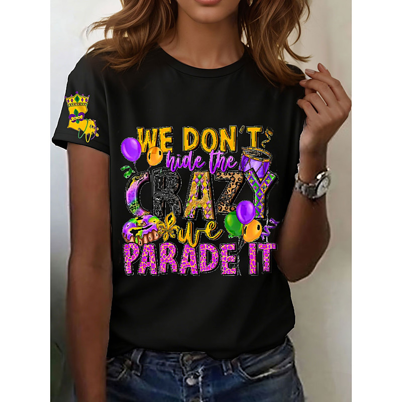 Mardi Gras Women's T Shirt Graphic Letter Vintage Stylish Classic Short Sleeve Crew Neck Regular Tops Daily Weekend Print Black White Purple Summer Spring