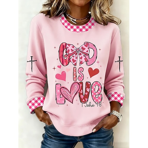 Per donna Felpe con cappuccio Cuore Grafico Moda Casual Manica Lunga Girocollo Top Regolari Streetwear Abbigliamento Quotidiano Stampato Bianco Rosa Beige Primavera Autunno Faith
