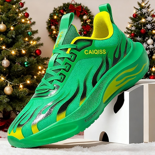 scarpe da corsa da uomo verdi e gialle: calzature vivaci ed eleganti per le celebrazioni di Natale e Capodanno
