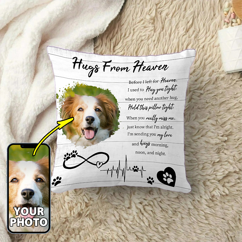 Custom Memorial Pillow Cover Photo Pet Cushion Cover Throw Pillow Sympathy Gift Personalized Memorial Gifts Hug from Heaven