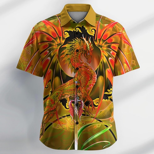 Herren Tiermotiv Drache Hemd Knopfhemd Designerhemd Kurzarm Vintage-Retro Urlaub Lässig Sommer Frühling Umlegekragen 3D-Druck Hemden mit Kragen Blau Purpur Orange Grün