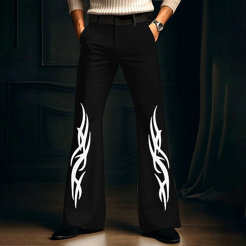 Herren Flamme Disco-Hosen 60er 70er Schlaghosen Mittlere Taille Vintage-Retro Outdoor Party Lässig Seitentaschen Schlaghose Frühling Herbst 3D-Druck Schwarz Weiß Rote