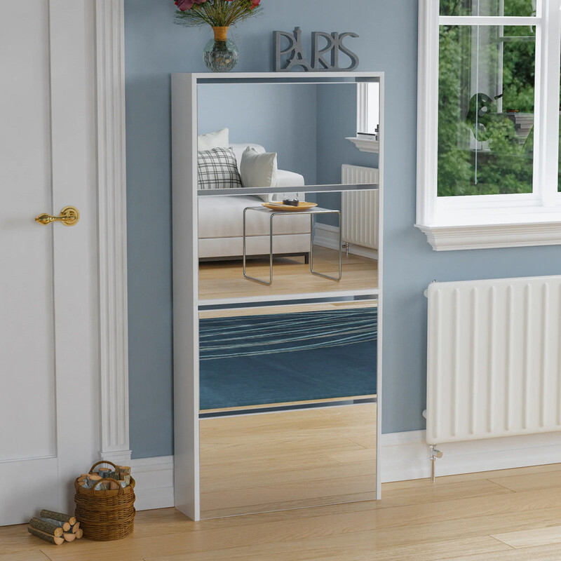 Vida Designs Shoe Cabinet Welham Mirrored 4 Drawer White