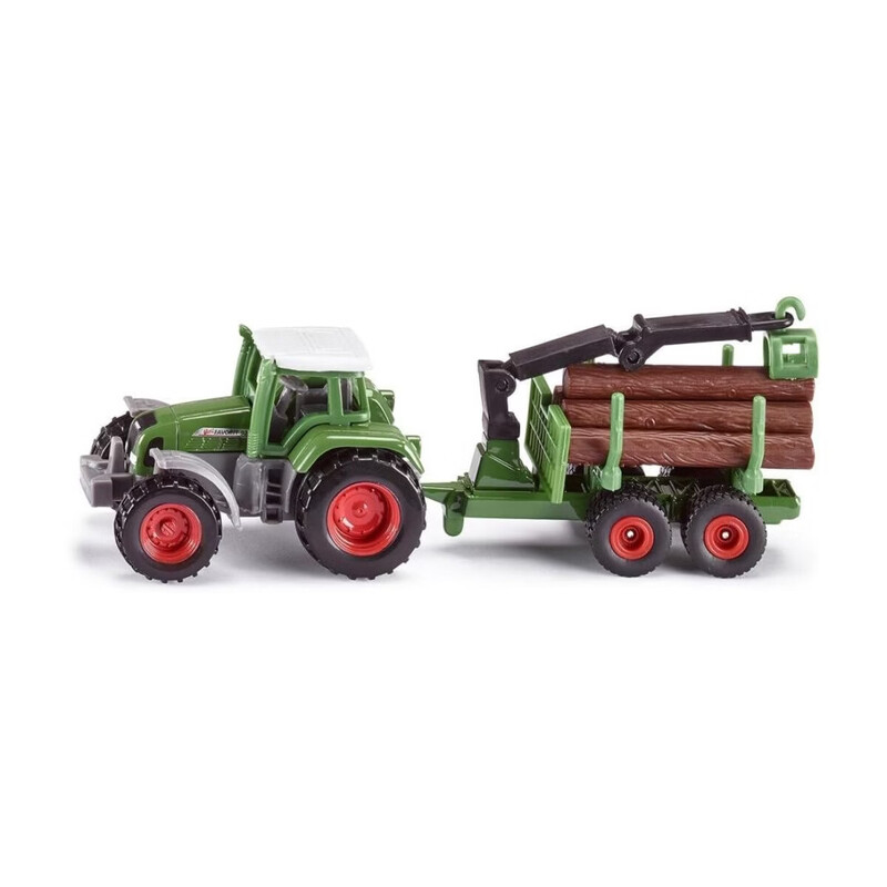 SIKU 1645 Fendt Traktor mit Forstanhänger, Metall/Kunststoff, Grün, Inkl. 6 Baumstämmen, Vielseitig einsetzbar