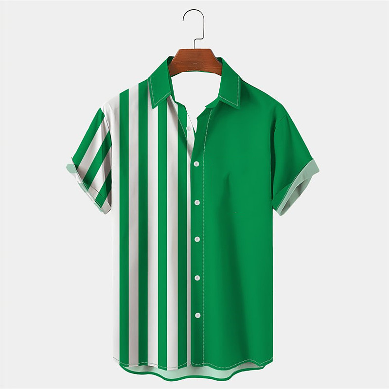 St.Patrick's Day Four Leaf Clover Casual Men's Shirt Daily Wear Going out Weekend Summer Turndown Short Sleeves Dark Green, Green, Beige S, M, L 4-Way Stretch Fabric Shirt St.