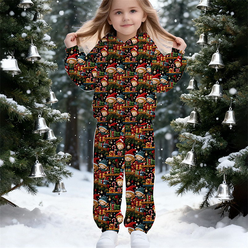 Christmas St. Patrick Girls' 3D Graphic Elf St. Patrick's elf Hoodie Sweatpants Set Sports Suit Tracksuits Long Sleeve 3D Print Fall Winter Sports Fashion Casual Kids 4-12 Years Hooded Outdoor