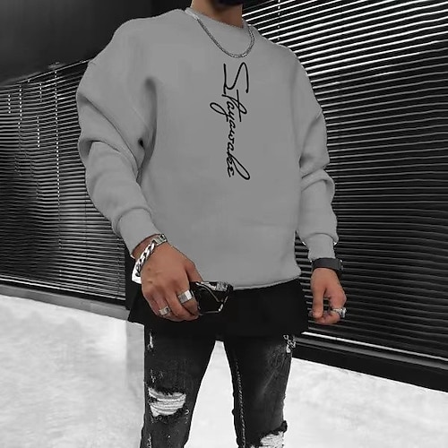 Per uomo Tinta unica Maglione Manica Lunga Felpa Girocollo Streetwear Abbigliamento Sportivo Essenziale Stampa a caldo Sport Outdoor Casuale Abbigliamento casual alla moda Oversize Primavera Autunno