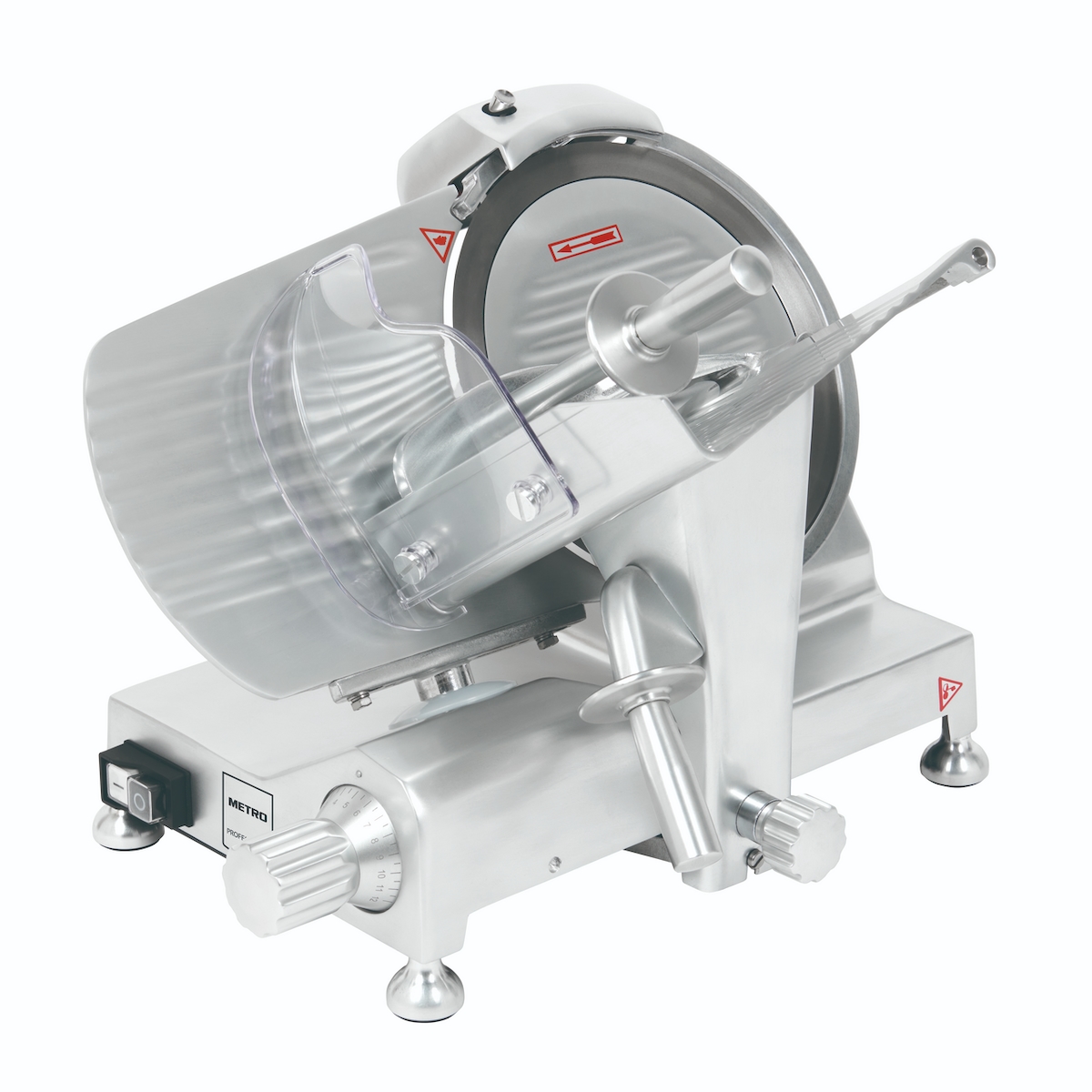 METRO PROFESSIONAL Schneidemaschine GFS4025, Eloxiertes Aluminium, 39.2 x 48.2 x 37.5 cm, 150 W, Klingen-Ø: 25 cm, Schnittstärke: 0-12 mm, silber