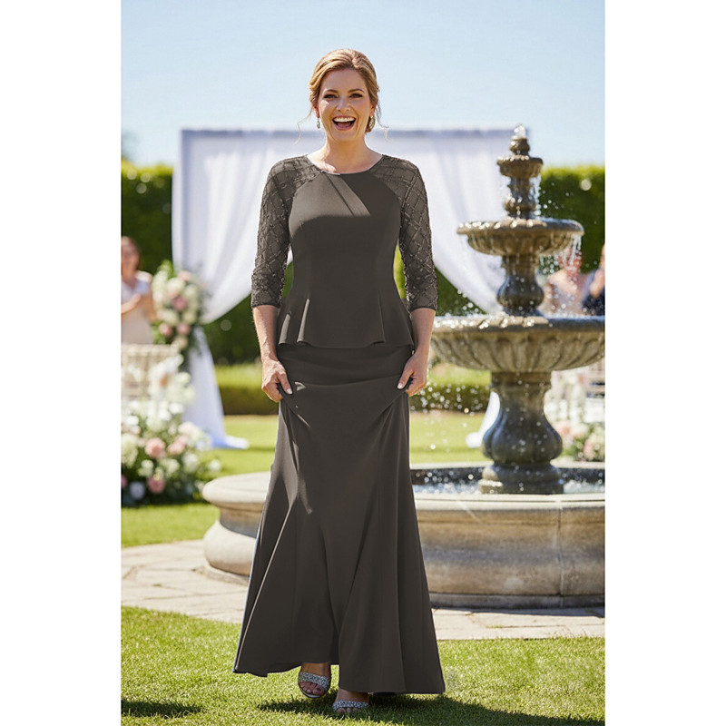 Mermaid Trumpet Floor Length Wedding Guest Dress Formal Dresses Evening Gown Mother of the Bride Dress 3/4 Length Sleeve Crew Neck Elegant Formal with Lace Pleats