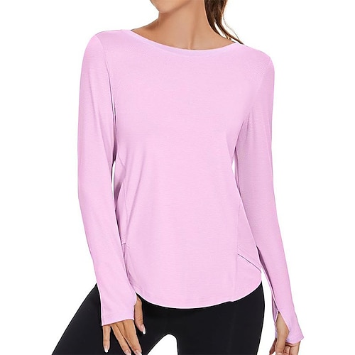 Per donna Magliette da yoga Canotte da yoga T-shirt Fitness Girocollo UPF50 Traspirante Manica Lunga Gli sport Tinta unica Top Per Palestra Corsa Fitness Abbigliamento sportivo