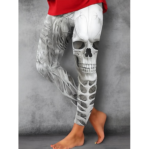 Leggings da donna vacanza moda vintage alla caviglia vita alta grafica teschio stampa morbida traspirante elastica vacanza strada casual bianco blu verde khaki primavera autunno inverno slim fit