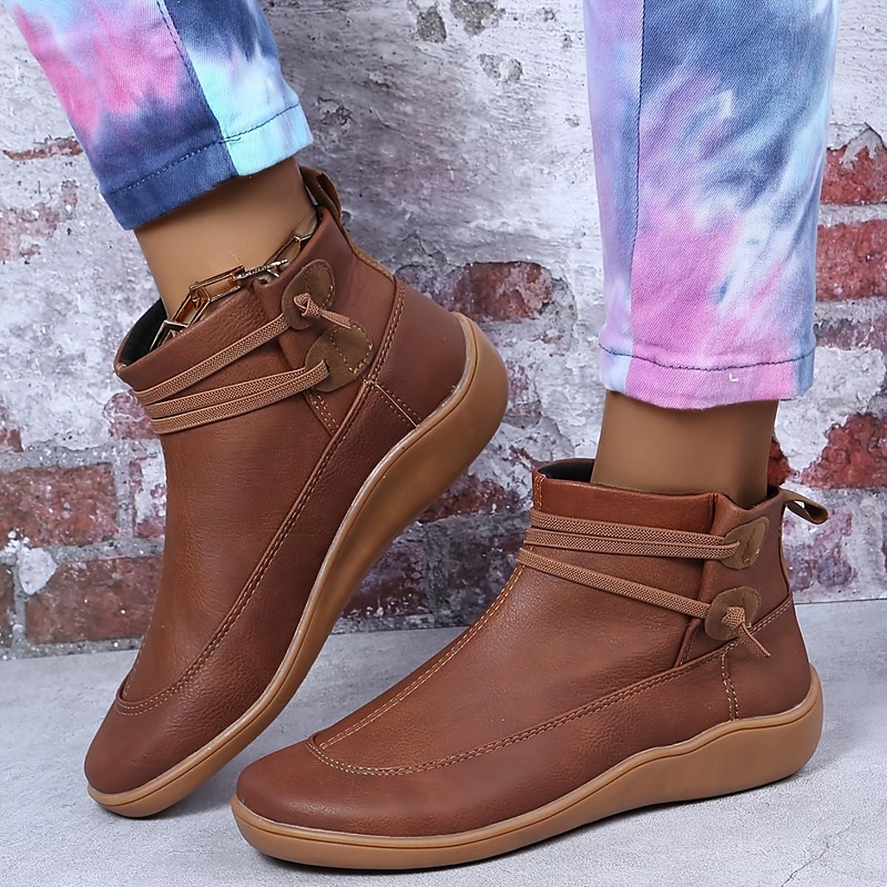 Women's Red Casual Ankle Boots – Soft Faux Leather Warm Lined Flat Booties with Adjustable Strap for Walking, Travel and Winter Outfits