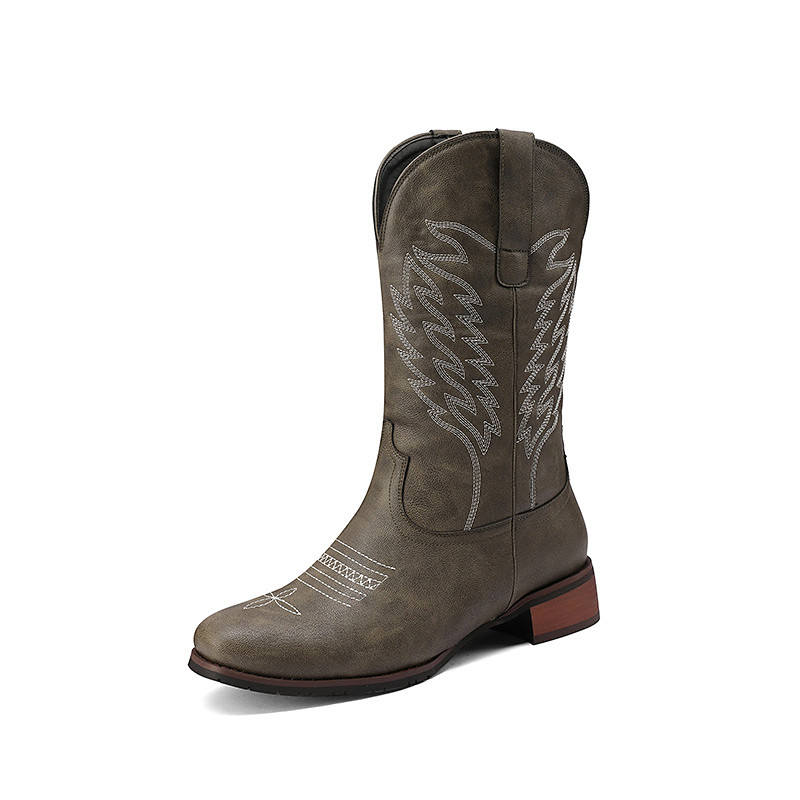 Brown Faux Leather Men's Western Style Cowboy Boots with Embroidered Detailing – Rugged and Stylish Footwear for Country and Western Events