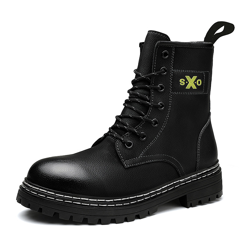 Black Faux Leather Men's High-Top Boots with Green Logo Detail – Trendy and Comfortable Footwear for Casual and Street Fashion
