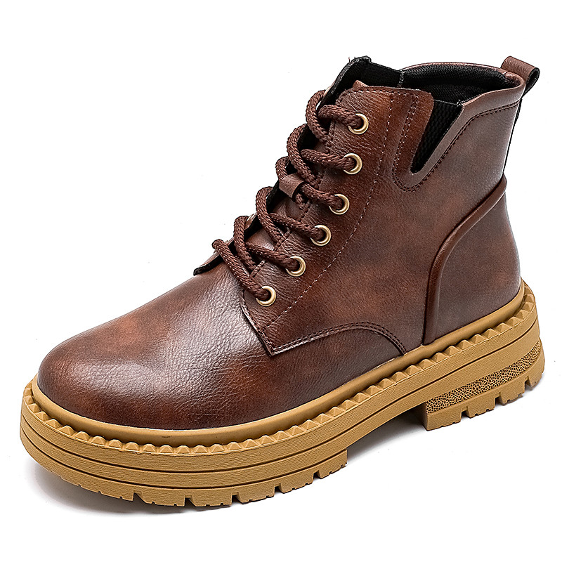 Men's Brown Faux Leather Lace-up Boots with Chunky Sole - Stylish and Practical Footwear for Casual Outings, Work and Everyday Use